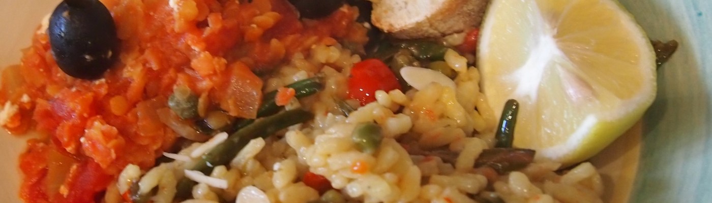 Here’s two Mediterranean – vegetarian dishes that would serve around 4 to 6 people. Or you can make individually, for a lighter lunch or supper for 2 to 4 people…