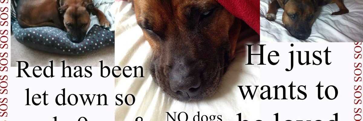 Red recently had respite in foster care, from the reputable kennels where he’d been for 2 years. (A long time for a dog in search of a comfy sofa and a best friend.) He isn’t fitting in with the other dogs in foster care. He is feeling pretty depressed and lost right now. It will be dire for him to go back to kennels having been there for years previous. Please read his plea below …
