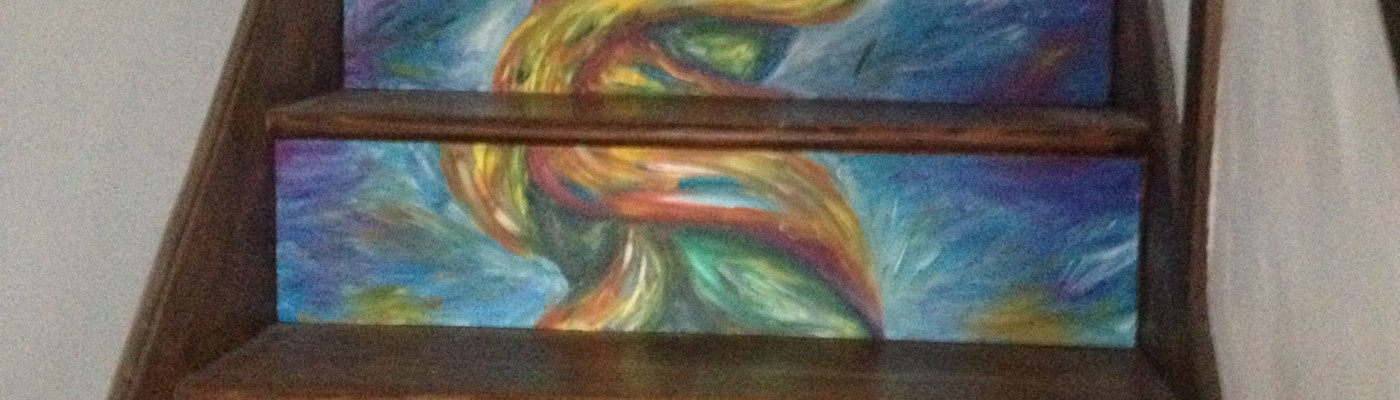 Finally, I must show you this staircase. My friend is an artist. It’s sort of like a magical beanstalk. Imagine hopping up those each night before bed. If anyone is interested in interior flair such as this – let me know and I can pass the message on when I see her.