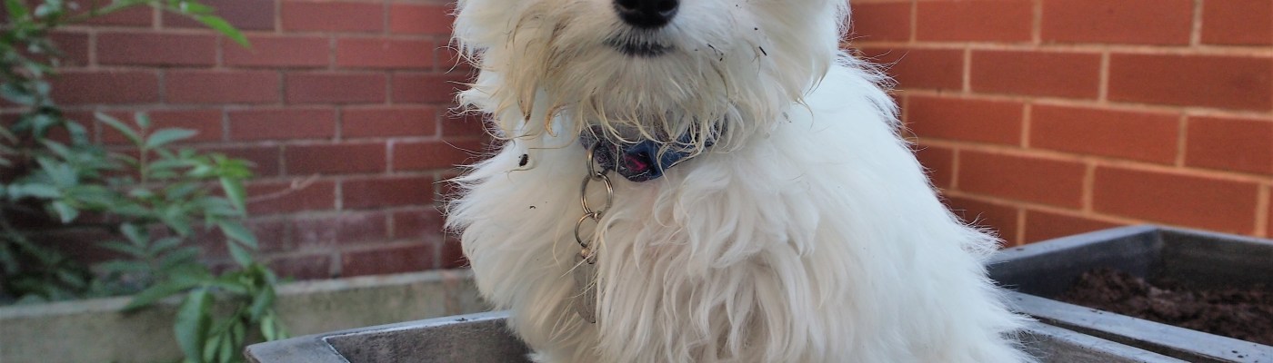 Cute! I remember going through the puppy stages with my dog, who loved to play in mud puddles after it rained, and was darn proud of it!