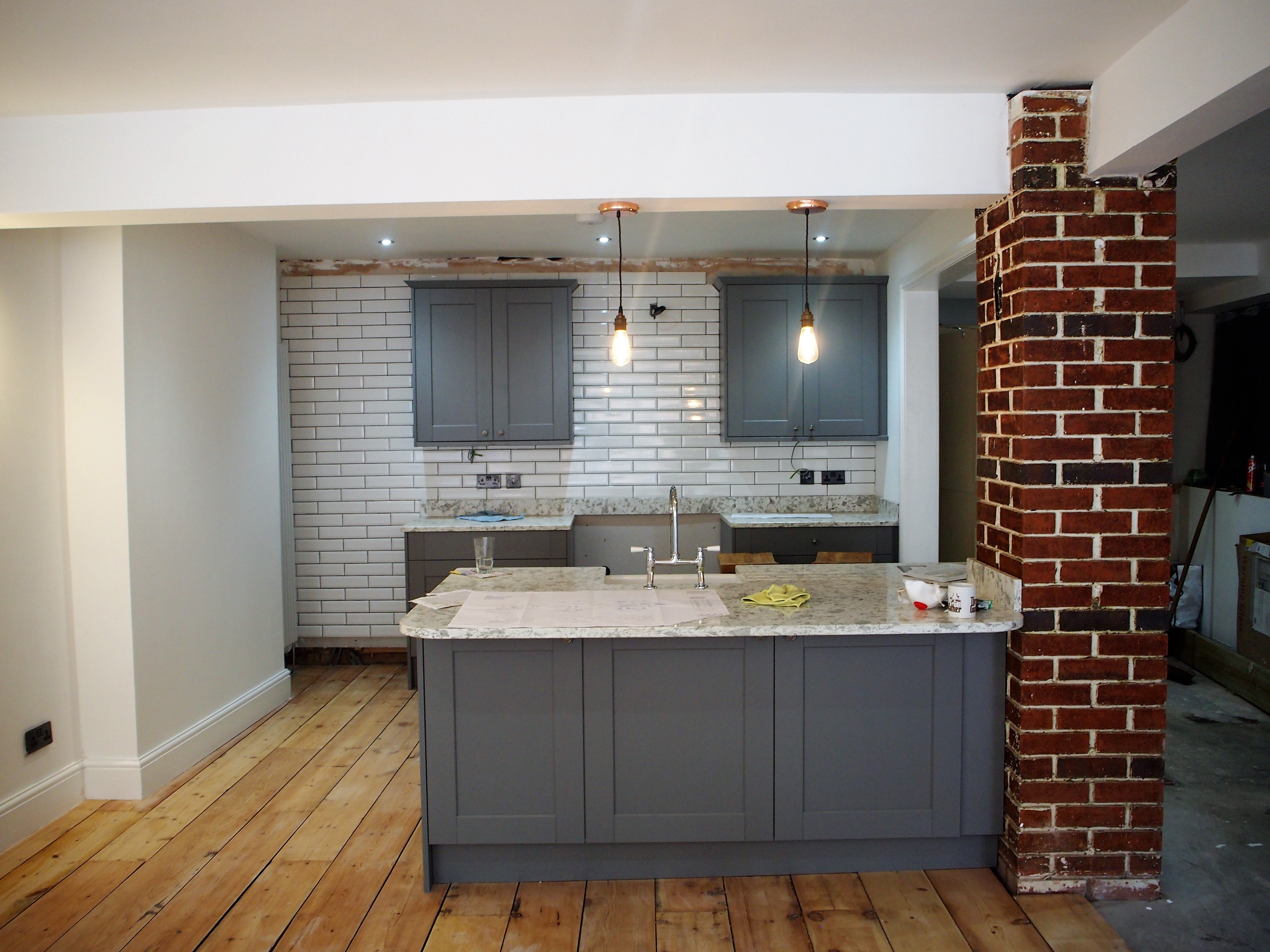 August 25, 2017August 25, 2017 by Tiffany Belle Harper Open Plan Gallery Kitchen – Restored Brick Pillar