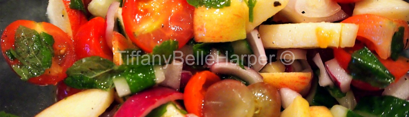 Then I’ve made a simple salad adding mint from the garden, apple and grapes for extra zest. Then my own secret ‘salad dressing’ recipe.