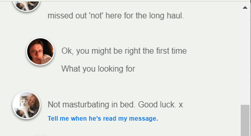 1. It was as though I was standing naked in a cattle market of rejects where they wore x ray specs. They’re certainly not your average meet on the high street people. As if a guy would turn up on a first date in his underpants with one hand tucked down them. They think being online is a means to an end. It has inspired a book to be honest. Poor sods. Not a clue.