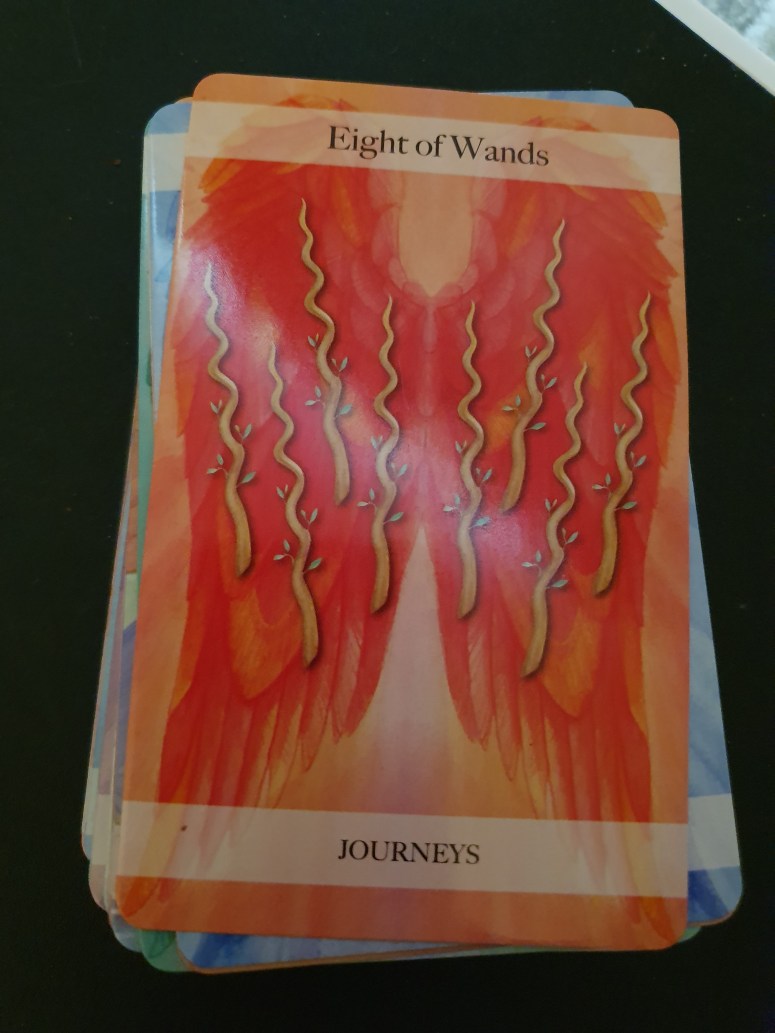 So my card for today is Eight of Wands and how I want to interpret this is there will be better times for travel. We must not fear isolation but also we must seek how we can improve our internal communication and over come blocks in our thought patterns. This is not a personal card it is a card like all others shown here which reflects my concerns (as it is my reading) towards the chaos of today and current times. A bigger way I could look at this is to focus on ‘8’ and my instincts would not be in another faking a synchronicity as the universe does not synchronise through ill intent or bravado. But more so the 8th. And I feel the 8th April where a journey of some nature will be evident in the bigger framework. I send this situation love.