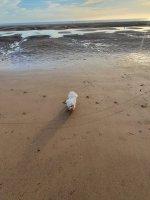 tiny dog massive beach