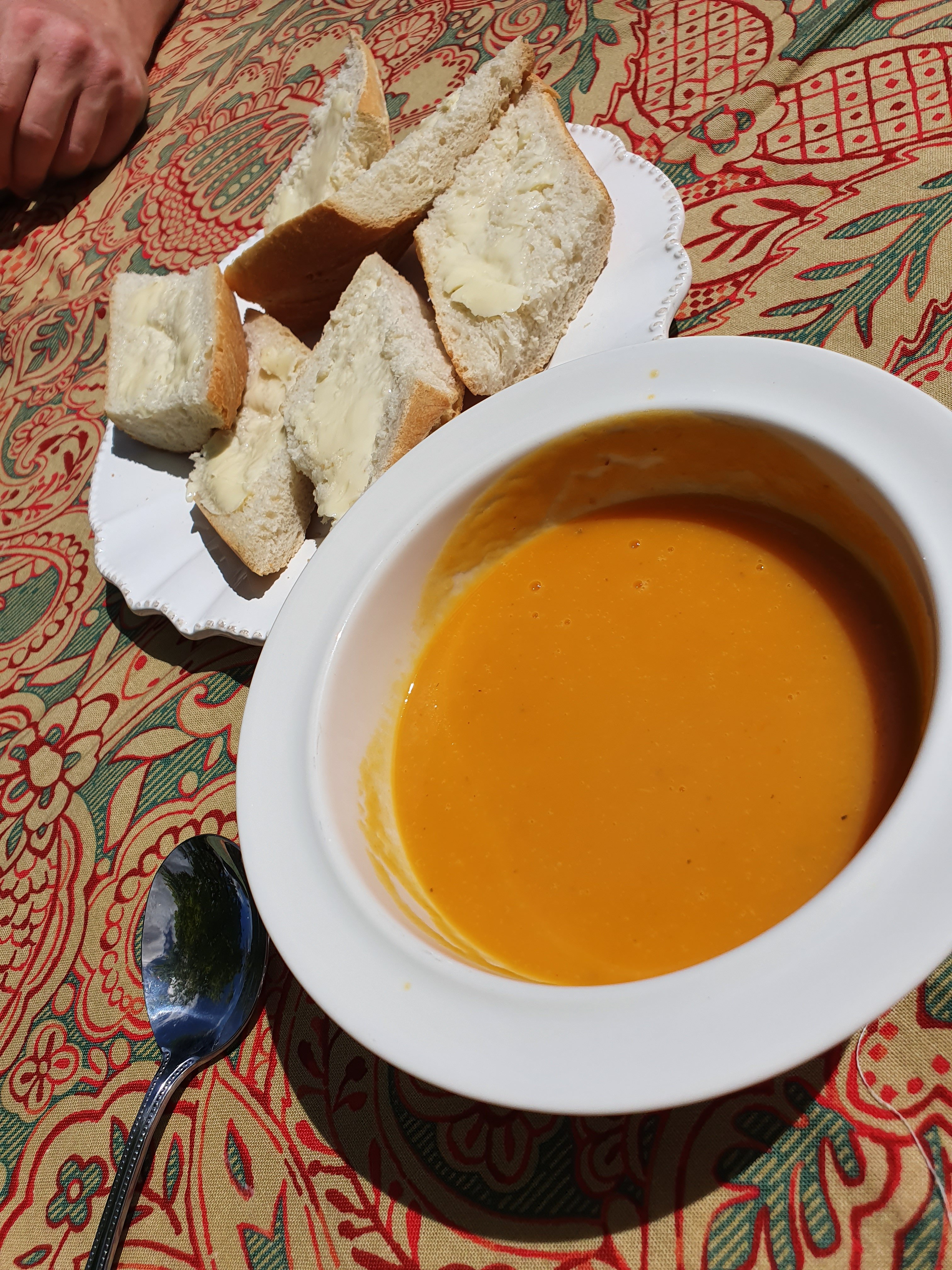 Homemade Butternut Squash soup and crusty bread