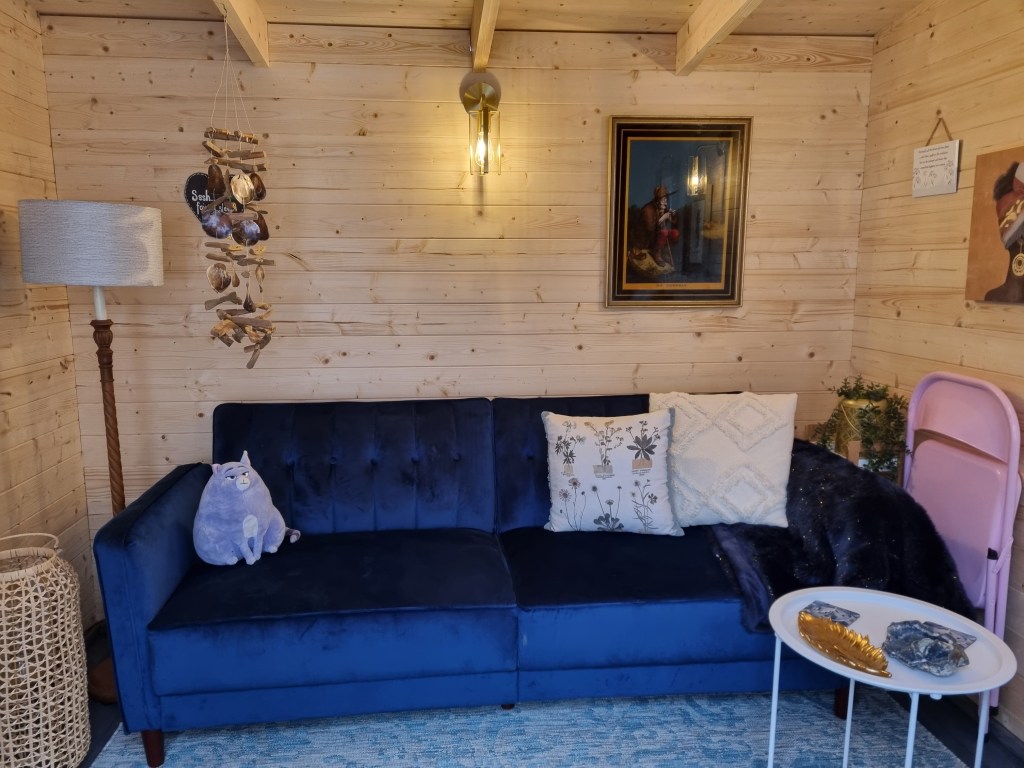 And when we feel passionate about something, it is amazing where in the universe sentiment comes from. Some of the bits here I have found on the street or in charity shops. Junk lying around the house. The sofa becomes a bed, so next I am going to cover it in more cushions and a big soft throw. It’s a real love project, inspired by space and time travel to be honest.