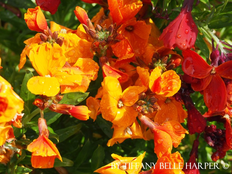 Oranges, reds, russets and yellows adorned by rain in the spring